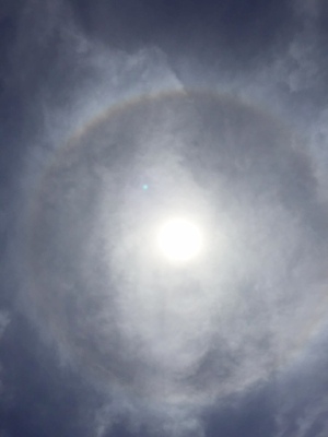 実際には太陽の周りが虹のように見えました。